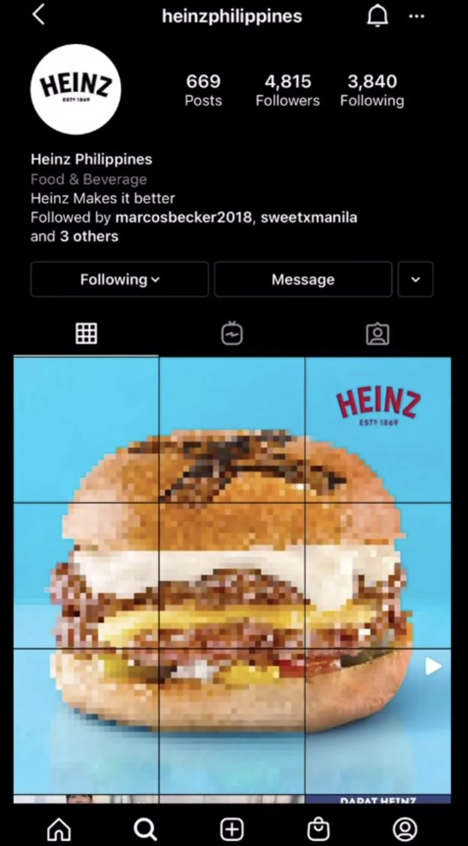 We designed an Instagram grid of our pixelated [Seriously Good] burger and slowly revealed it with fun daily video content to get people craving and excited to win a FREE burger.